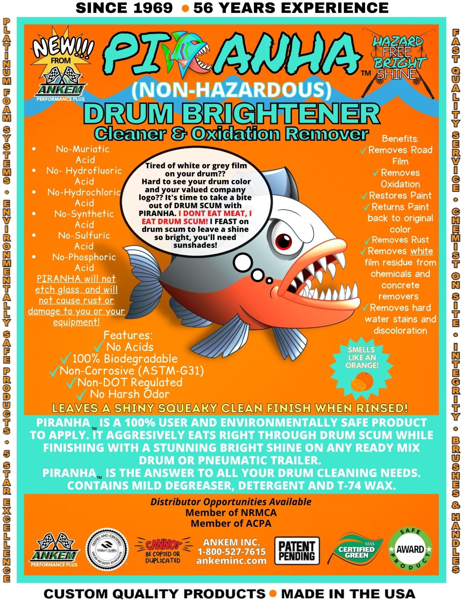 - PIRANHA outperforms the competition without using any harsh acids, making it completely safe for both users and equipment.