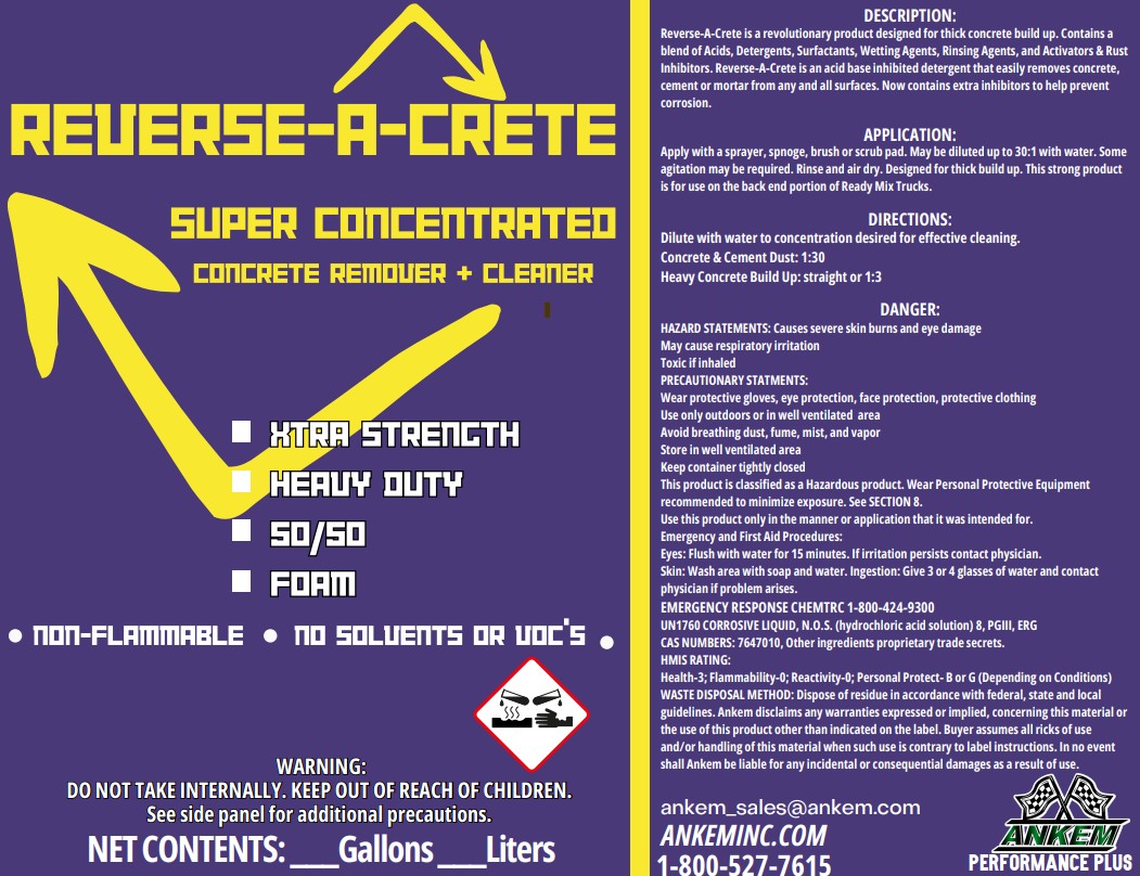 - As an acid-based inhibited detergent, Reverse-A-Crete effectively dissolves and removes concrete, cement, and mortar from a wide variety of surfaces.
